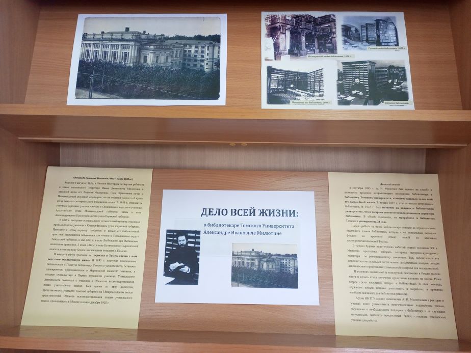 Выставка приурочена к 160-летию со дня рождения А. И. Милютина, 34-х летнее служение которого в библиотеке Томского университета стало делом всей его жизни.