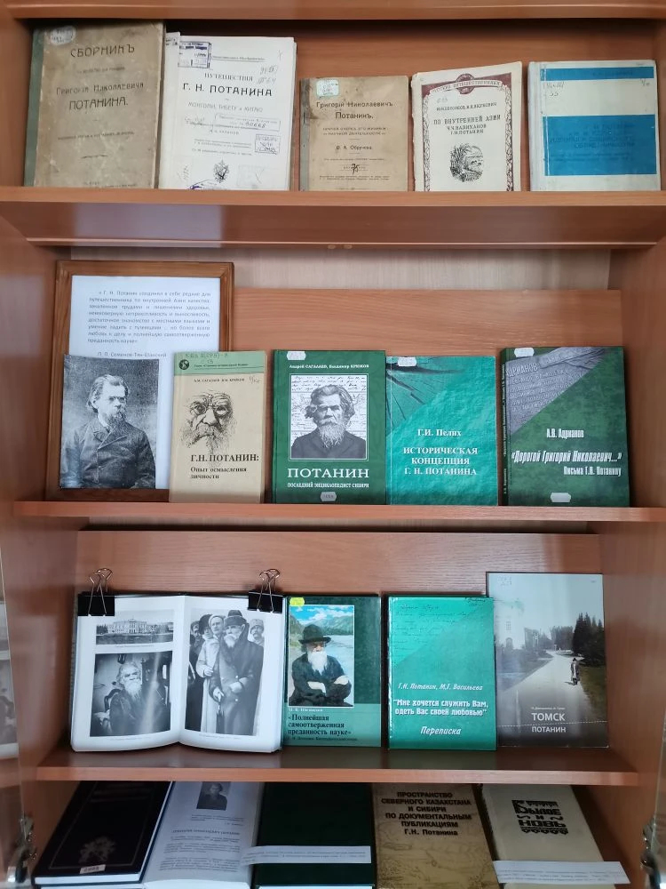 На выставке, подготовленной сотрудниками историко-краеведческого отдела, можно ознакомиться с трудами Г. Н. Потанина, сохранившимися в нашей библиотеке, в том числе с дореволюционными, изданными в Томске и Санкт-Петербурге. Представлены также книги и публикации о его жизни и деятельности. Особенное внимание уделено томскому периоду жизни Г. Н. Потанина.