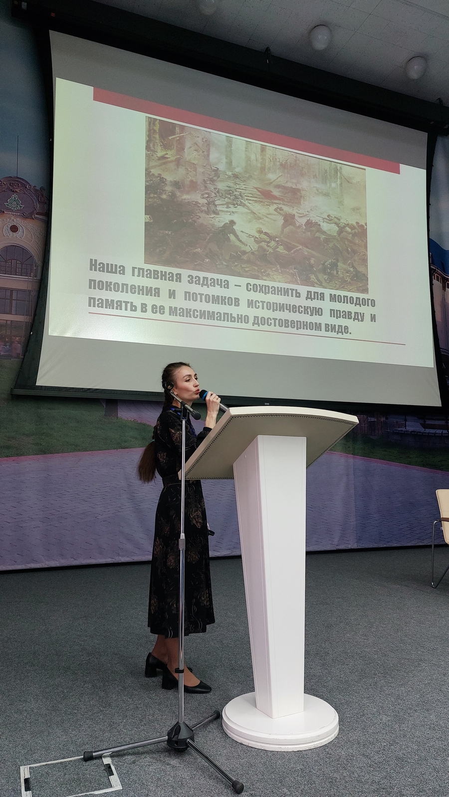 В завершение выступления Анна Михайловна отметила, что передвижная выставка является актуальным, удобным и востребованным инструментом изложения, распространения и сохранения краеведческих знаний о периоде Великой Отечественной войны, позволяющим транслировать их не только в городе, но и за его пределами. И, что не менее важно, посредством данного проекта решается его глобальная цель – сохранить и увековечить имена жителей томской земли, которые, наряду с другими советскими воинами, поставили победную точку в страшной войне.