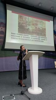В рамках проходящей в ТОУНБ им. А. С. Пушкина межрегиональной научно-практической конференции «Проекты библиотек как инструмент в системе патриотического воспитания гражданина» 23 октября 2025 г. состоялась работа секций. На секции, посвященной краеведческим проектам библиотек как важному фактору патриотического воспитания подрастающего поколения, выступила сотрудница историко-краеведческого отдела Пушкинки Анна Михайловна Богданова. В докладе «Передвижная выставка "Они штурмовали Рейхстаг" как инструмент деятельности ТОУНБ имени А. С. Пушкина по патриотическому воспитанию детей и молодежи» были освещены следующие моменты: идея создания данного проекта, его цель и задачи, привлечение специалистов к работе над выставкой, источники, ставшие основой для ее появления, текстовое и иллюстративное содержание ролл-апов, посвященных Берлинской наступательной операции и участию томских бойцов в штурме Рейхстага.
