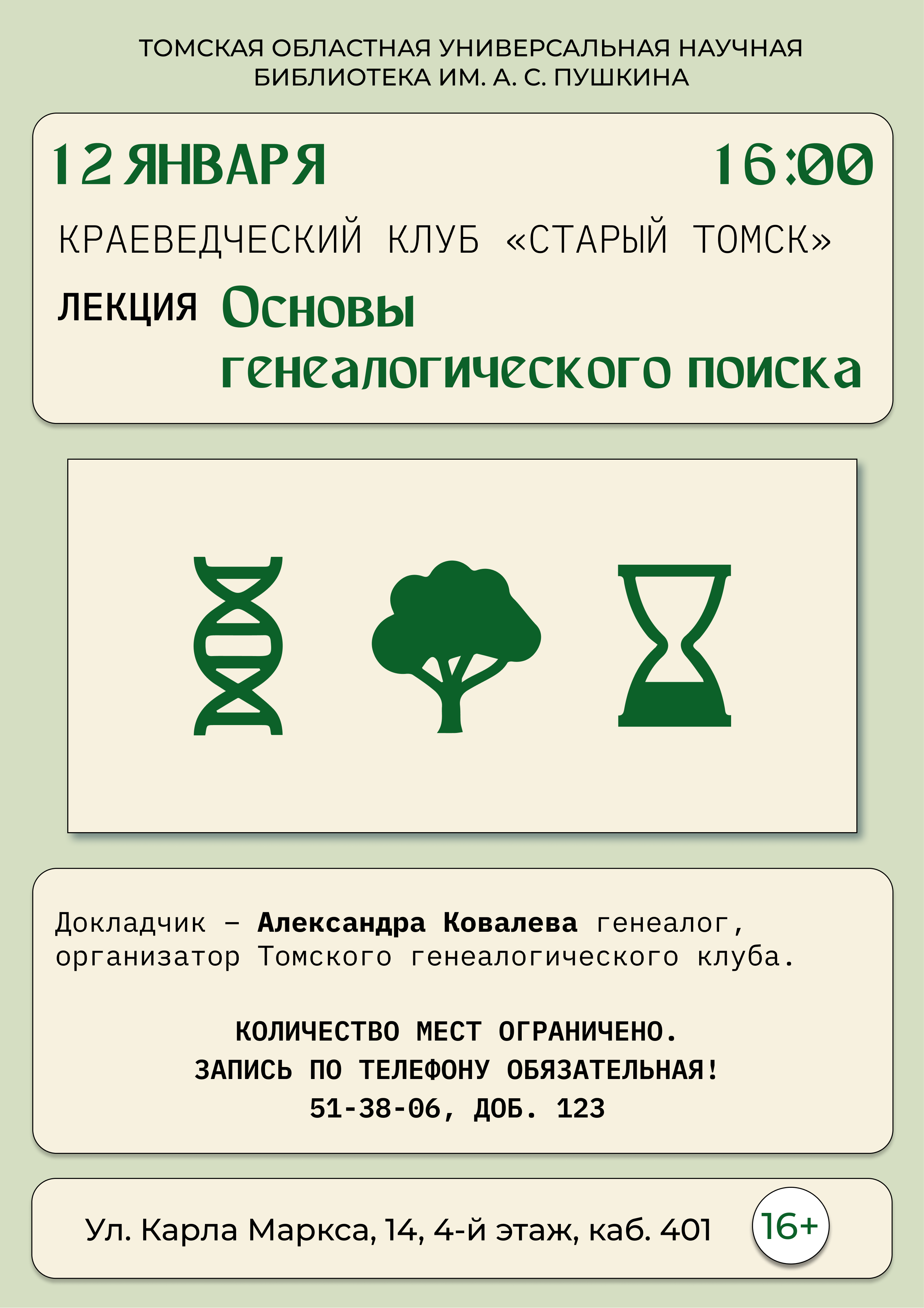 Участников клуба ждет открытая лекция на тему «Основы генеалогического поиска».