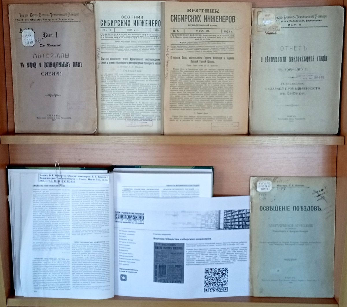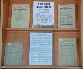 На выставке кроме номеров Журнала и Вестника Сибирских инженеров экспонируются устав и отчеты Общества за разные годы из фонда сектора редких книг нашей библиотеки, а также статьи томских ученых-историков об этом Обществе.